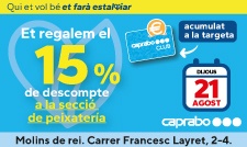 Caprabo, S.A.U duu a terme una promoció el dissabte 28 de juny de 2025 en les següents botigues amb rètol Caprabo situades a Catalunya, en les quals durant el referit període, es publiciti en la pròpia botiga la realització d’una promoció identificada amb el següent eslògan: "15% de descompte en la teva compra”.