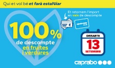 Caprabo, S.A.U duu a terme una promoció el dissabte 13 de setembre de 2025 en las següents botigues amb rètol Caprabo situada a Catalunya, en la qual durant el referit període, es publiciti en la pròpia botiga la realització d’una promoció identificada amb el següent eslògan: "Et retornem el 100% de la teva compra en fruites i verdures en vals”.