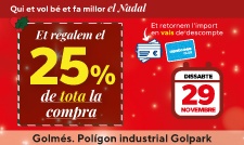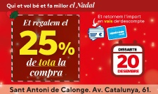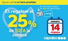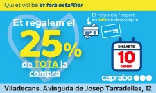 Caprabo, S.A.U duu a terme una promoció el dissabte 15 de novembre de 2025 en las següents botigues amb rètol Caprabo situades a Catalunya, en les quals durant el referit període, es publiciti en la pròpia botiga la realització d’una promoció identificada amb el següent eslògan: "Et retornem el 25% de la teva compra en vals”.
