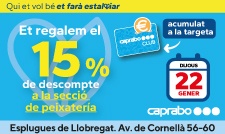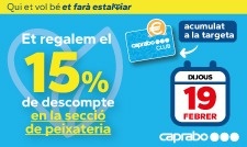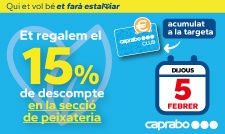 Caprabo, S.A.U duu a terme una promoció el dijous 6 de novembre de 2025 en la següent botiga amb rètol Caprabo situades a Catalunya, en les quals durant el referit període, es publiciti en la pròpia botiga la realització d’una promoció identificada amb el següent eslògan: "Et regalem el 15% de descompte en peixateria”.