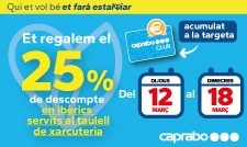 Del dijous 25 de març fins al dijous 8 d’abril de 2021 a les botigues amb rètol Caprabo i que tinguin taulell de xarcuteria, Caprabo, S.A. de Catalunya realitzarà la següent promoció identificada amb el nom de: "25% de descompte en ibèrics servits al taulell de xarcuteria en un únic val"