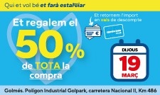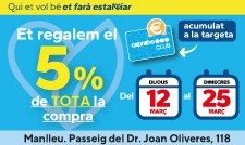 Del dijous 11 al dissabte 13 de març de 2021 a les següents botigues, realitzaran la següent promoció identificada amb el nom de: "La teva compra sense IVA".