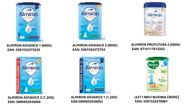 Retirada de productes Llets infantils marques ALMIRÓN i BLEDINA